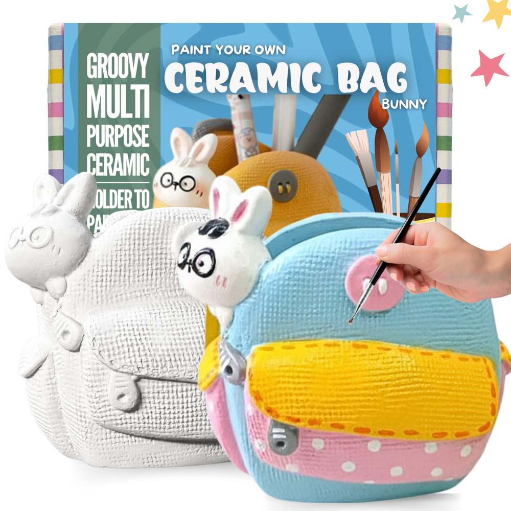 This little bunny bag art kit is absolutely adorable. It was fun to paint our own pen holder for our study room. This turned out just wonderfully! We loved it!