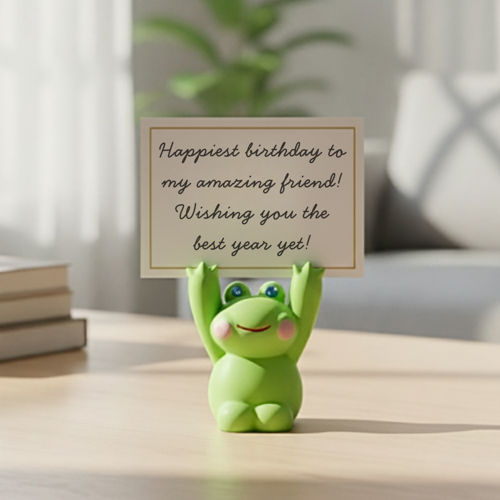 Bring a playful touch of nature to your space with this Handmade Frog Photo Holder, beautifully crafted from premium ceramic. Each piece is meticulously hand-painted with charming details, capturing the adorable expression and lively character of a little frog, making it a delightful accent for any room.