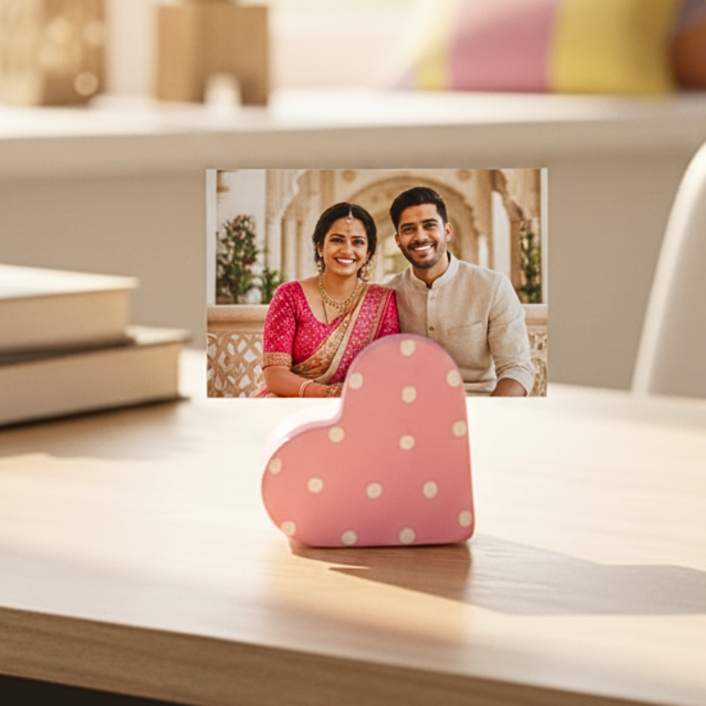Its sturdy and secure slot holds your photos, notes, postcards, or mini prints upright — making it both decorative and functional. Place it on your bedside table, work desk, console, or shelf to brighten your surroundings with a cute and meaningful touch.