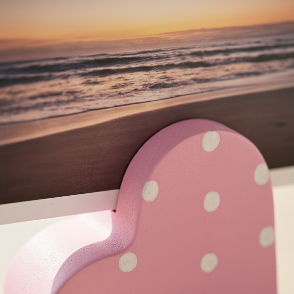 Celebrate your cherished memories with this Handmade Ceramic Heart Photo Holder, designed to bring warmth, charm, and a touch of sweetness to any space. Carefully handcrafted from premium ceramic, this heart-shaped holder is hand-painted with playful polka dots, capturing the soft, joyful aesthetics of a lovingly made décor piece.