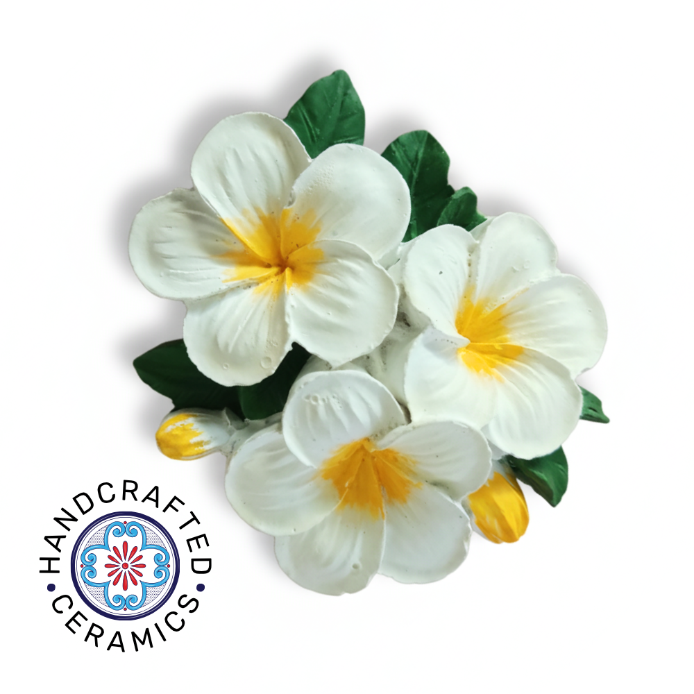 Bring a fresh and soothing touch of nature into your home with this Handmade Fridge Magnet – Frangipani. Inspired by the soft, delicate petals of the frangipani flower, this magnet is carefully handcrafted from ceramic and hand-painted with intricate detailing to resemble a real blooming flower.