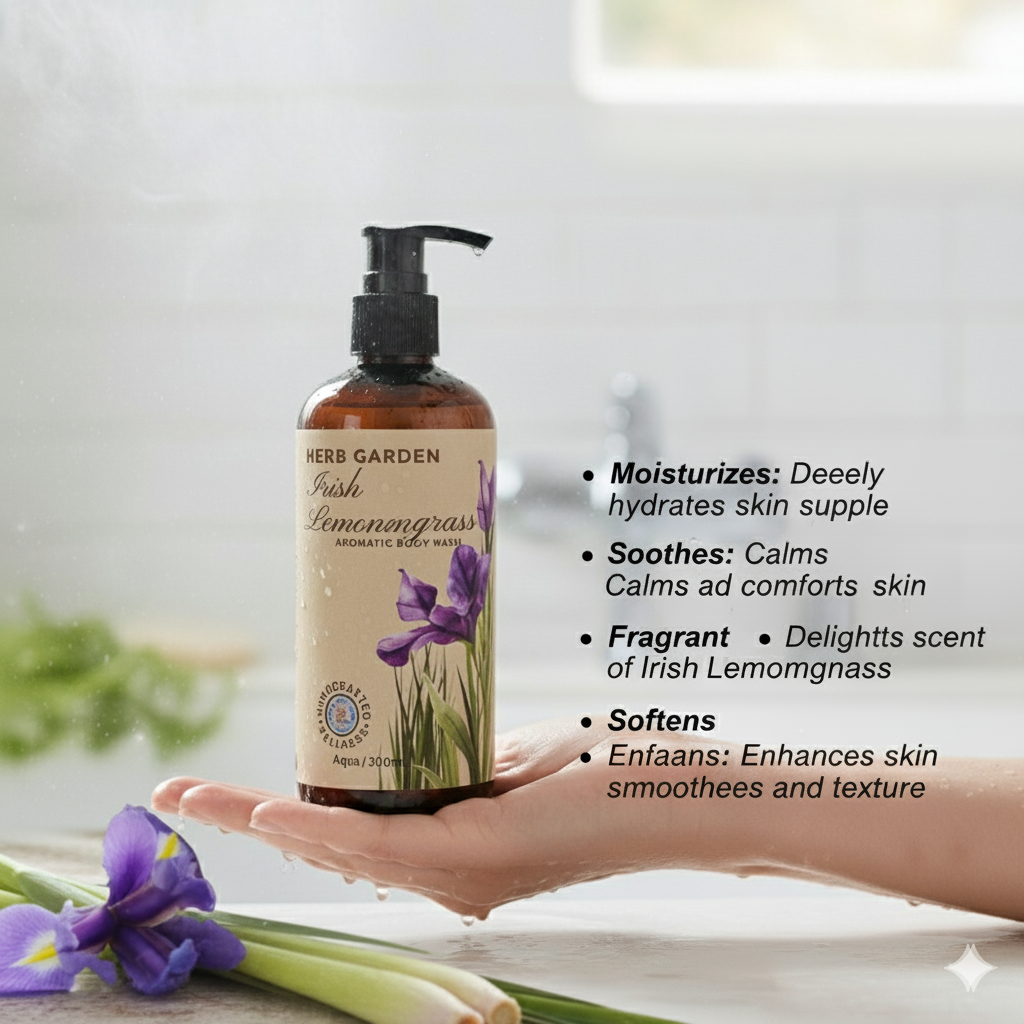 Awaken your senses with the Herb Garden Irish Lemongrass Aromatic Body Wash, crafted to give you a fresh, energizing start to your day. Infused with the uplifting fragrance of natural lemongrass extracts, this herbal shower gel helps cleanse your skin deeply while revitalizing your mood.