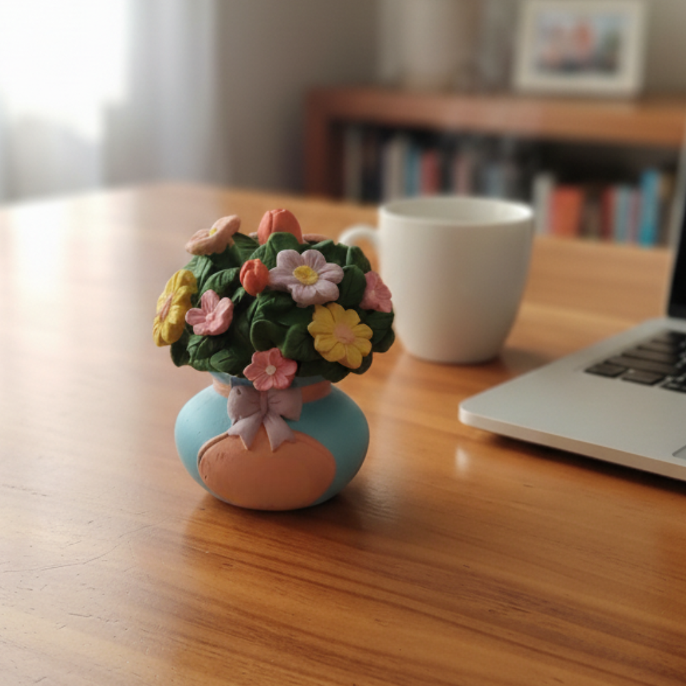 Add a splash of vibrant, lasting color to your home or office with this beautiful, petite ceramic figurine. This piece captures a cozy, springtime feel, featuring a delightful bouquet of multi-colored flowers permanently arranged in a charming blue vase.
