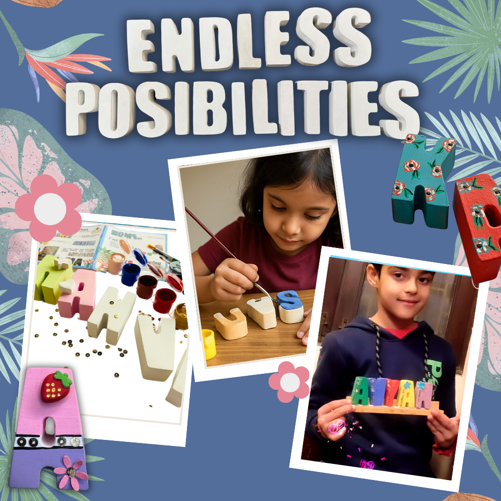We have the full alphabet available in this Diy name kit, so there is no limit to the words, names, sayings you can put together. The paints provided are smooth, water-based colors, easy to use and mix well together. The DIY kit comes with everything you need to get creative.